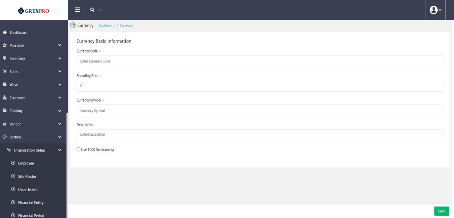 Click on the 'New' button located at the top-right corner of the Currency screen , to add new currency. This will take you to the following page: