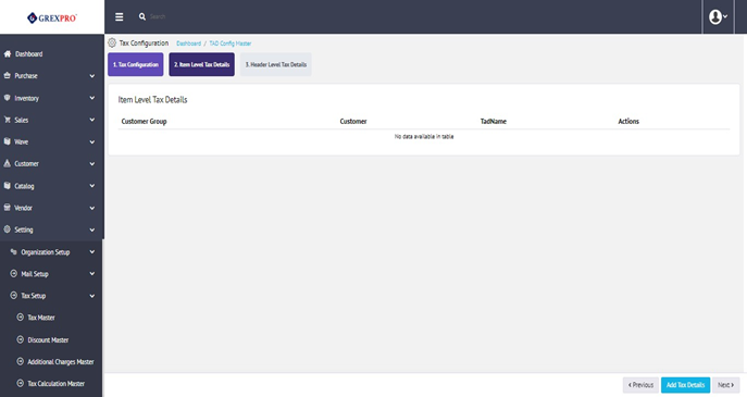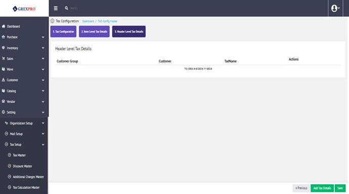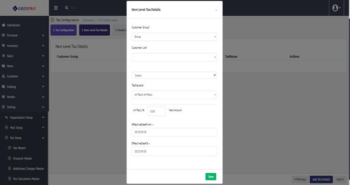 Click on the Add Tax Details button following with a pop-up will get open where you need to fill in the required information and click on the save button to move to the next step.