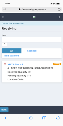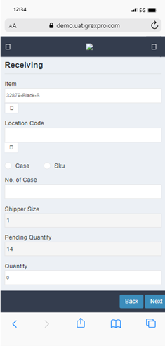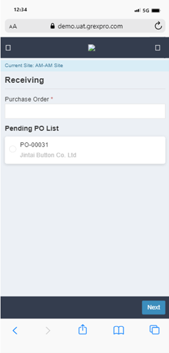 Here, you can perform the receiving operation, which is divided into two. First, you need to select the PO from the list or directly add the PO number in the search box, followed by clicking the Next button, which will take you to the next screen. In the next screen, you need to select an item that you want to scan. After filling in the required details, click Next to generate the receipt.