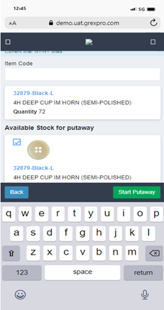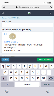 To perform Put Away using Item, you need to select Item, followed by entering location in the text box. Here you can see a list of all items available at that particular location; you can select an order for which you want to perform Put Away operation and click on Start Put Away button to move to the next screen. To scan an item you need to enter an item code in the text box, which will lead you to the next screen where you need to enter put away location and click on Done button to move to next step. Click on the Finish Put Away button to complete the process.