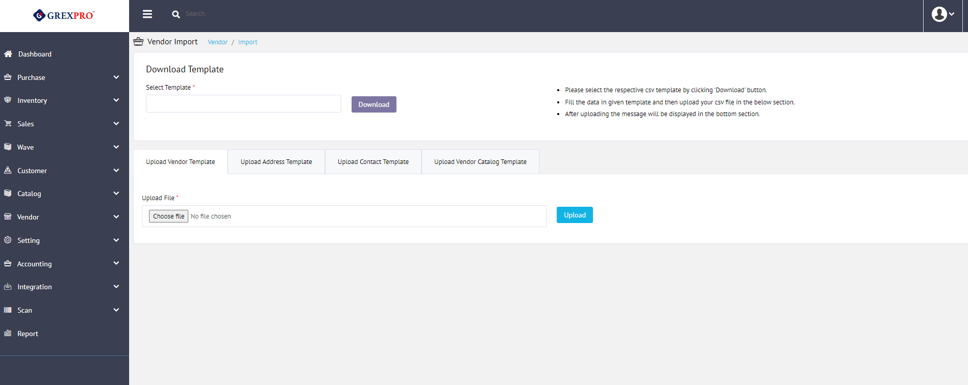 Simply by clicking on the "Import" button placed at the bottom center of the page, you can import details of vendors from the integrated website.