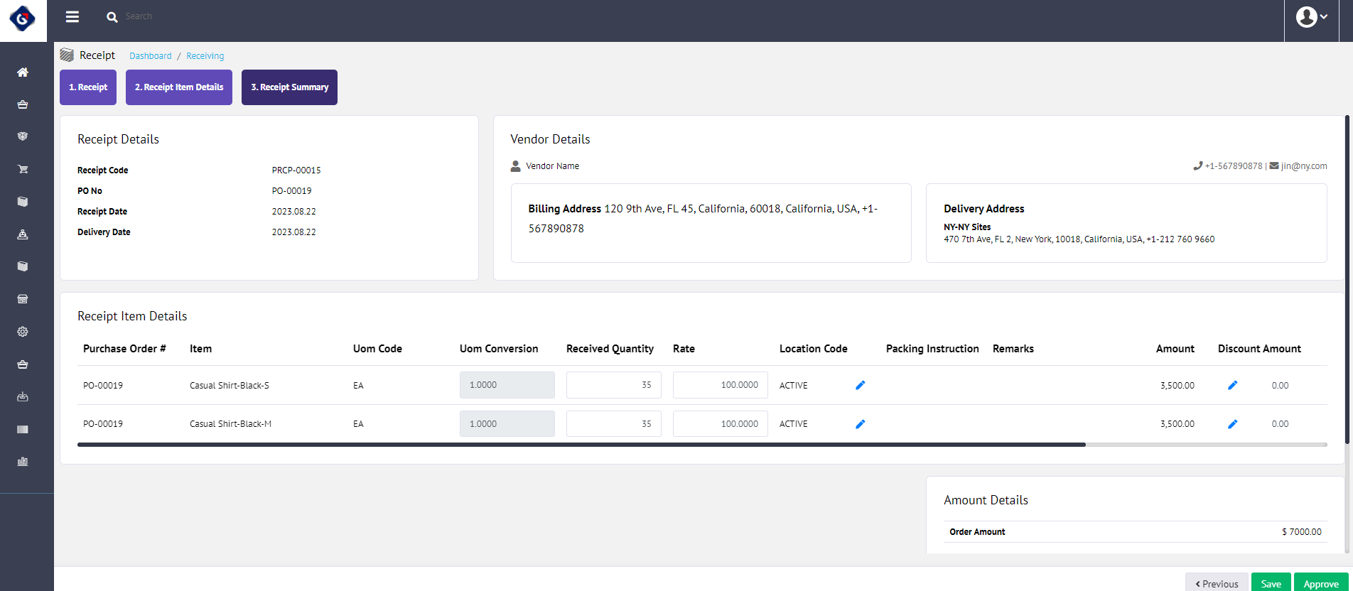 Click on the Next button to move to the final step, which is Receipt Summary. You can approve a receipt using thean 'Approve' button located at the bottom-right corner or leave the receipt for future approval.