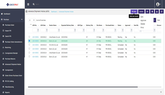 To print ASN, select the entry from the list and click on Print from Action dropdown, and your ANS will be ready to print.