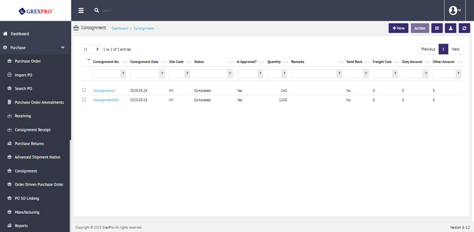 This option is only available for unapproved entries. You can either click on Consignment No directly or select an entry and choose the Edit option from the Action dropdown available at the top-right corner of the screen.
