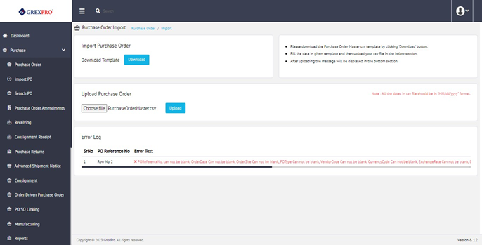 Import from CSV is a feature by which users can import Sales Order data into the Grexpro system from data saved into a CSV format file.
