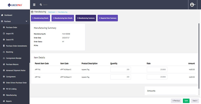 The third step shows the manufacturing summary, and you need to click on the Save button to complete the process.