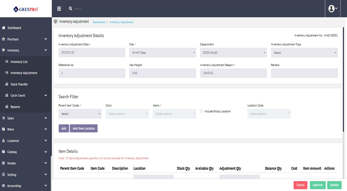 Secondly,Or, you can go on the edit page where you can see an the Approve button at the bottom-right corner of the screen. Click on the Approve button to approve the adjustment.