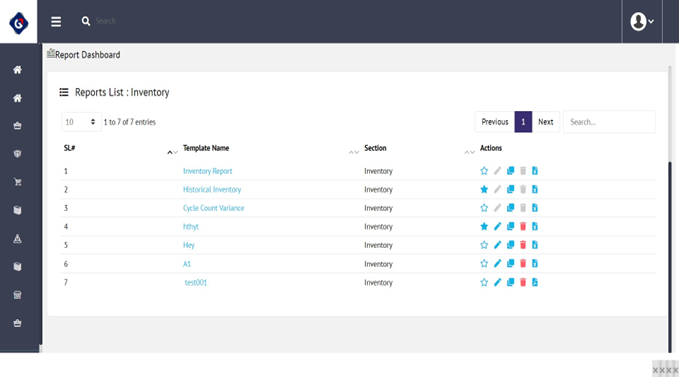 By default, there are three reporting templates naming named: Historical Inventory Availability by Date, Historical Inventory Availability by Date, and Inventory Report. These templates cannot be edited or deleted. If, apart from these three reports, you want to create a customized report, you can clone any of the existing one by clicking on the 'Clone' icon and giving a unique name to the template.