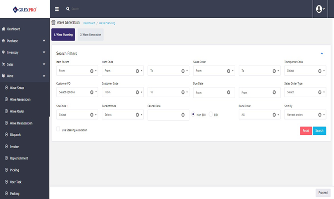 Click the 'Search' button to search the SO for which you are looking to generate wave. Select the SO and click on the 'Proceed' button.