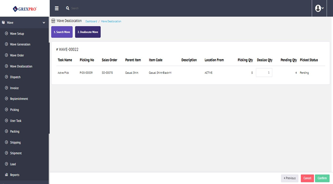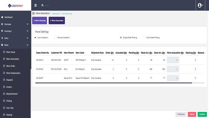 Click the Confirm button to generate a wave or to make changes, click the Previous button and Cancel button to abundant the process. All these buttons are located at the bottom-right corner of the screen.