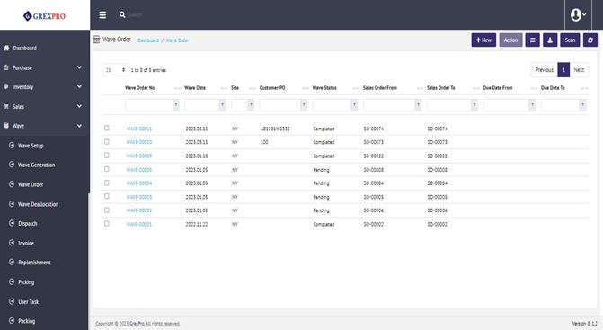 To add a new Wave Order, click the 'New' button located at the top-right corner of the screen, which will take you to the 5.2 Wave Generation page.