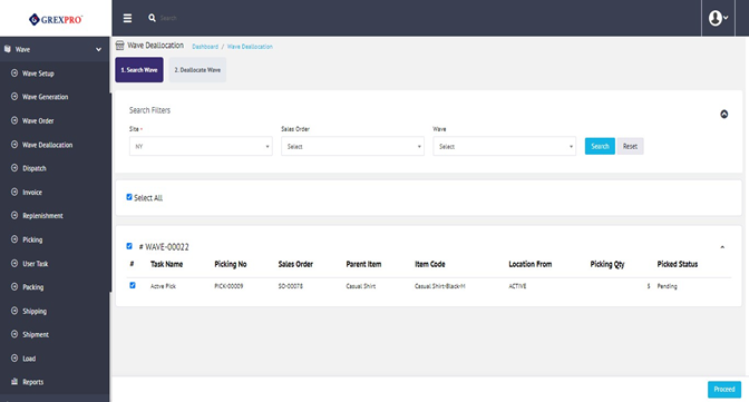 Click the Search button, a list of wave orders will show down; you need to select items for which you are looking to generate wave deallocation: