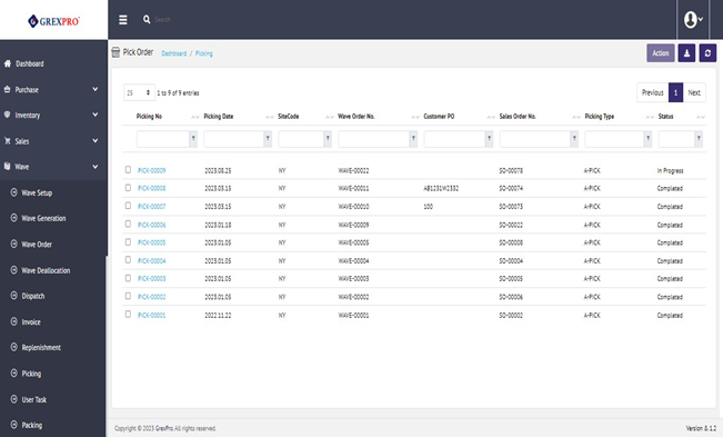 To view pick order, either you can click the Picking No or select an entry- click the 'Action' button and select the 'View' option from the dropdown.