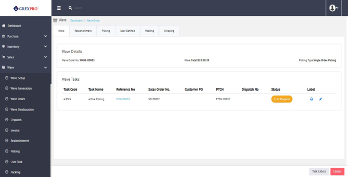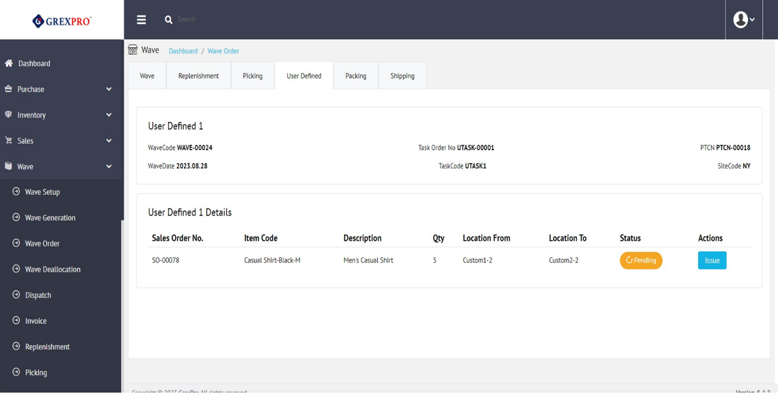 This is applicable for custom wave orders, where you have defined extra steps during wave setup. Here, you can see a list of all user tasks.
