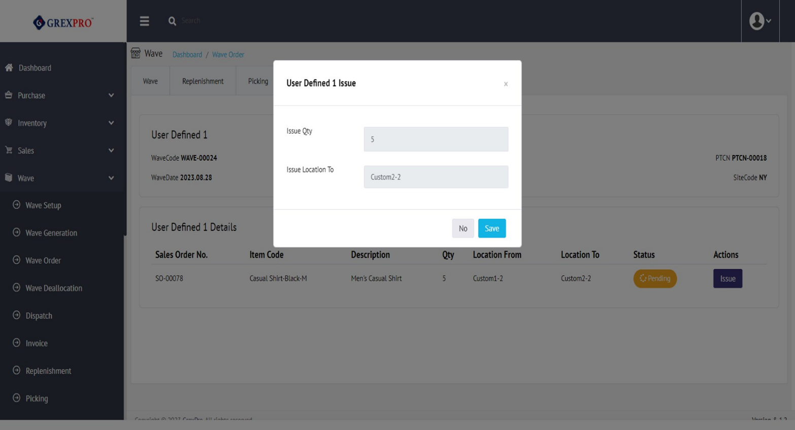 Click the Issue button to perform the operation. This will open a pop-up where you need to Issue Location To complete the user task.