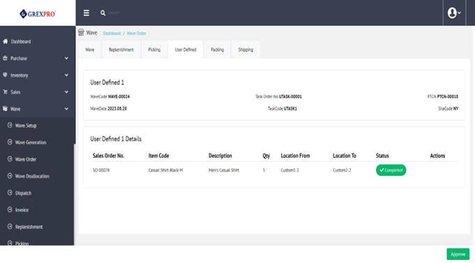 After clicking the Save button, you can see an Approve button at the bottom-right corner of the screen, click on it to approve the user task.
