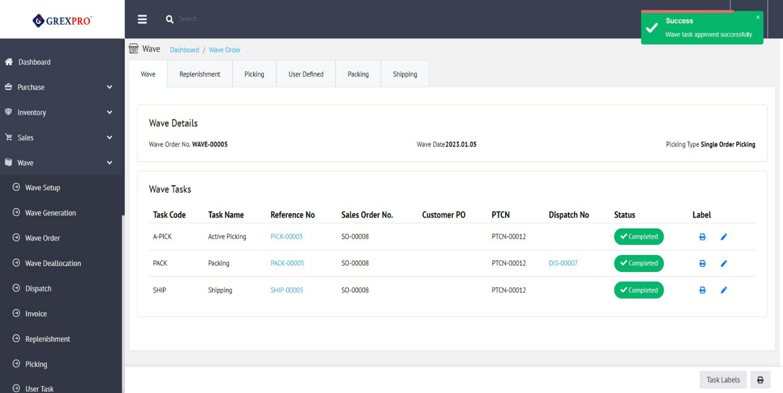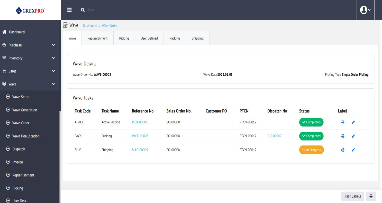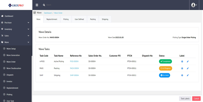 To perform any operation, click the link of Reference No. associated with that process. In order to complete the Wave - Process you need to follow the workflow defined in Wave Generation.
