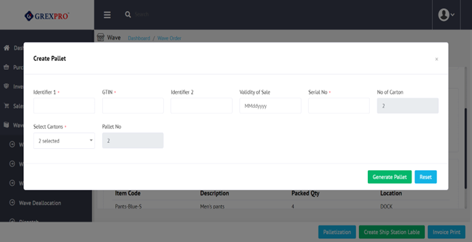 Palletization is the process of placing goods or materials, onto the pallets. However, there are different approaches to palletization, and we can enter the pallet, but the pallet number format is based on the UCC pallet number. After palletization in Wave Setup is checked, you can see that on the packing screen and can enter the pallet number. And, to print the pallet, scan the bar code of the UCC pallet.