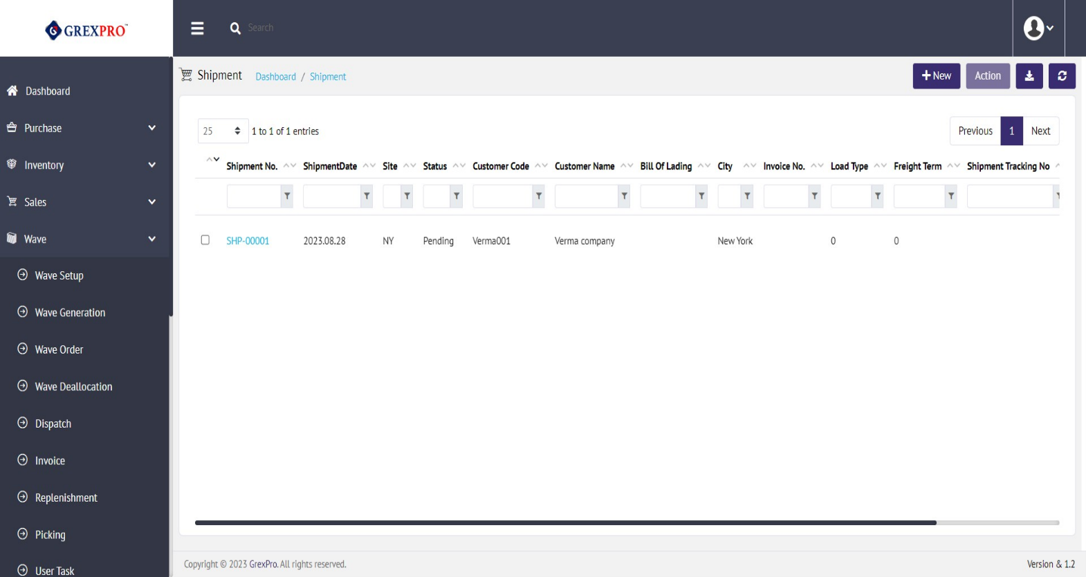 To add a new Shipment order, click the 'New' button located at the top-right corner of the screen.