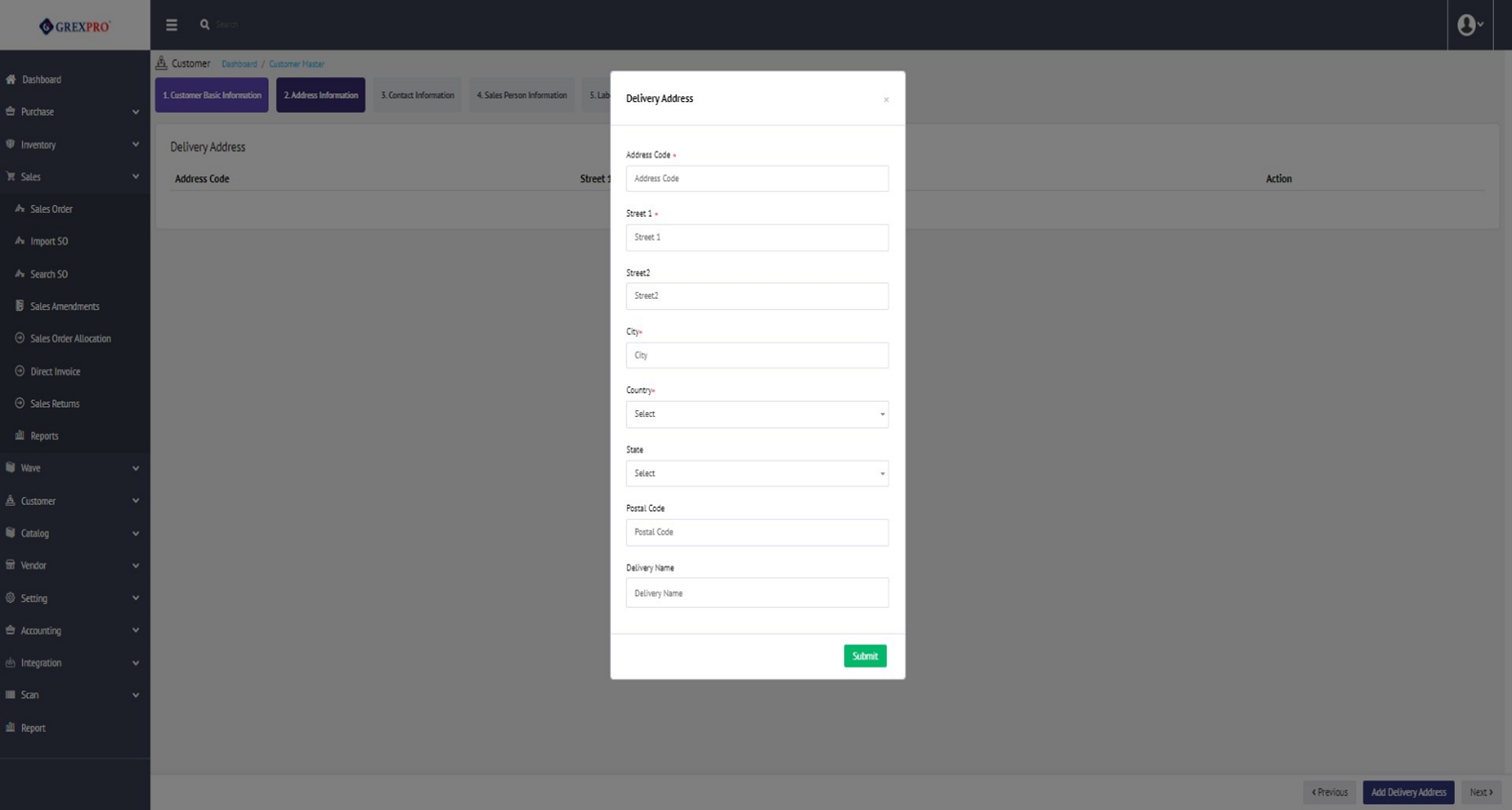 In this phase, you can add multiple delivery addresses. To add a delivery address, click on the 'Delivery Address' button located at the bottom right corner, which will open a pop-up.