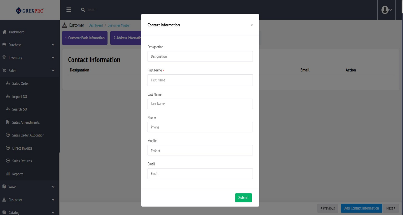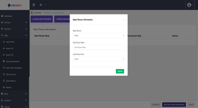 As none of the Address Information, Contact Information, and Sales Person Information is mandatory, you can skip these steps and save the customer information in Customer Master.